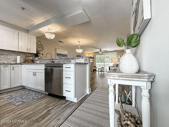 Welcome to this charming 2-bedroom 2-bath condo located in the highly sought-after Ocean Dunes of Kure Beach. Situated just a short bike ride away from Fort Fisher and the Aquarium. One of the unique features of this condo is the front entrance sitting area, which offers a picturesque view of one of the three outdoor pools in the complex. Plus, the convenience of having an elevator sets this building apart from many others. No need to worry about carrying your belongings up from the carport style parking spot just below. Step inside, to the updated modern coastal design. The open and bright layout allows for plenty of natural light to flow in. As you walk onto the oversized back balcony, you'll be greeted by a cool breeze from the shaded oak trees. The back balcony overlooks the community tennis courts. It's the perfect place to enjoy your morning coffee. You can also take a leisurely walk to the recreation center, which features an indoor pool, workout room/gym, playground, sauna, and more. The two large bedrooms are thoughtfully positioned to provide privacy, making it ideal for both guests. The fully functional kitchen is equipped to handle multiple guests with built in sprinkler system, and the remolded bathrooms come with a transferable warranty. Not only does this condo offer a fantastic location within the community, but it also provides access to the beautiful beach, you'll have endless opportunities for outdoor adventures. And if you're a boat enthusiast, you'll appreciate the convenience of the boat ramp and ferry located at the end of the island. Surfrider is a great place to call home, whether you're looking for a permanent residence, a SHORT-TERM rental investment, or a combination of both. The HOA fees are more expensive than others, but it covers water, sewer, trash, cable TV, internet, and master insurance, providing you with peace of mind and convenience. This unit has been owner occupied. Don't miss this opportunity