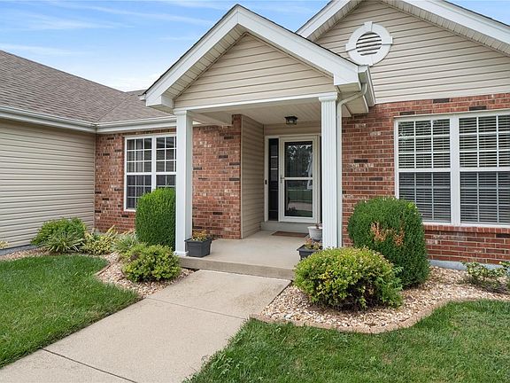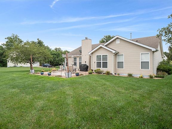 Not only is this ranch home located in The Orchards golf course community that also offers a community pool, tennis courts, clubhouse, but it is also on a cul de sac lot and in Mascoutah school district! Inside you will find hardwood floors, gas fireplace in the spacious living room, eat in kitchen with kitchen appliances to stay, and a formal dining room. The split bedroom concept has the two guest bedrooms sharing a full bath, and the primary bedroom on the other side of the home with it's own full bath with soaking tub and separate shower and near the laundry room that is off of the garage. The huge finished basement has a large living room with an egress window and dry bar that opens to the work out room. There is also a non conforming bedroom, multiple storage rooms, and a rough in for a future bathroom. The back yard has an extended patio and a great view of the large lot. All of this within minutes to Scott Air Force Base!