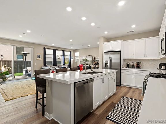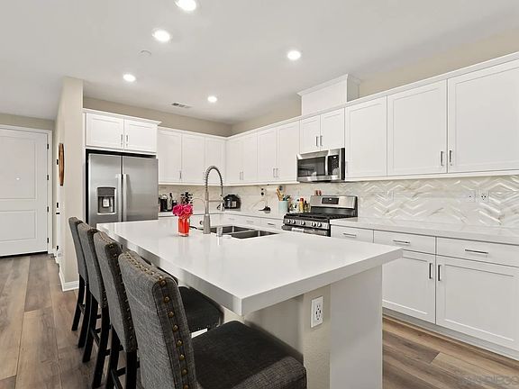 Experience modern elegance in this upgraded 4-bedroom, 3-bathroom condo, located in the desirable Cota Vera community of Chula Vista. Built in 2023, this home boasts exceptional features, including solar panels, a backup battery, and EV charging capabilities. The thoughtfully designed main floor offers a spacious open layout with a bedroom and full bathroom, ideal for guests or multigenerational living. Inside, custom flooring complements the sleek, contemporary design, while the upgraded kitchen shines with stylish countertops, a chic backsplash, designer lighting, and ample storage. Each bedroom is a serene retreat, offering comfort and sophistication. The fully finished backyard provides the perfect space for relaxing or entertaining. Don’t miss your chance to own this stunning property in Cota Vera—schedule your tour today!