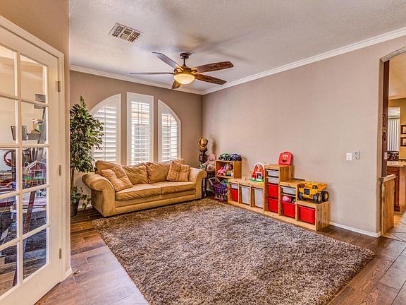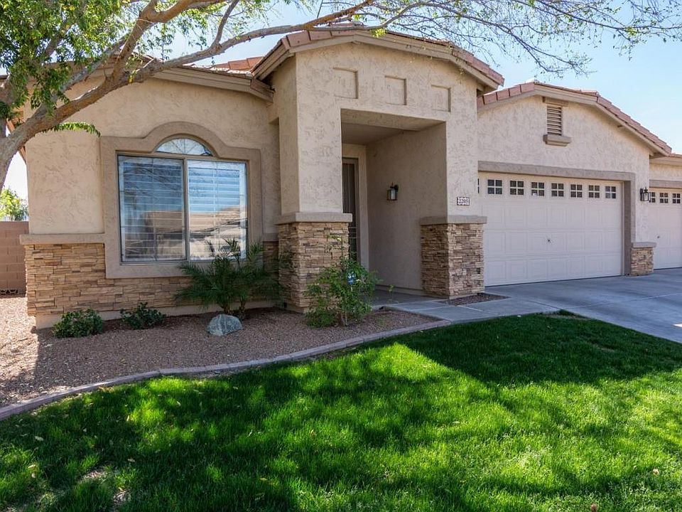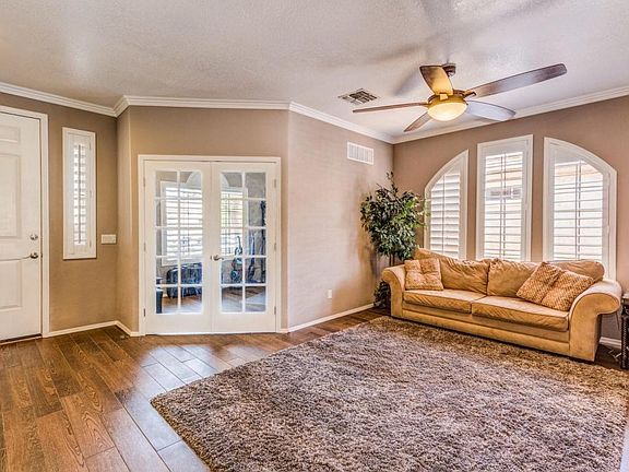 Beautiful single level home in South Phoenix. Soaring 9 foot ceilings go along with the warm wall tones and plantation shutters throughout. King crown molding in all the right places. Eat in kitchen is complete with a plethora of cabinets, stainless steel appliances, and center island with breakfast bar. Master suite has plush carpet, ceiling fan, and picture window. Full spa bathroom with his + her vanities and separate soaking tub + shower spacious walk in closet! Backyard features a covered patio with built in bar area, sparkling pool, luscious grass play area, and endless mountain views! New air handler and AC as of March 2018. This home is sure to go fast, so come see it today!