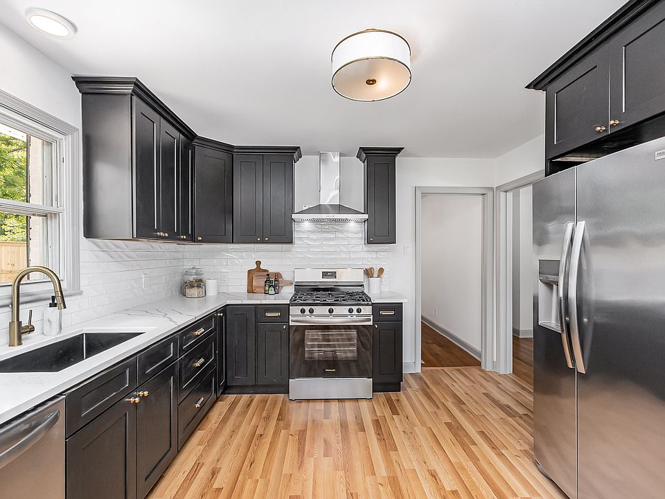 Contemporary finishesRefinished hardwood floorsRenovated brick ranchFresh modern interiorThoughtful finishes and fixturesSpacious fenced-in yardQuartz countertops