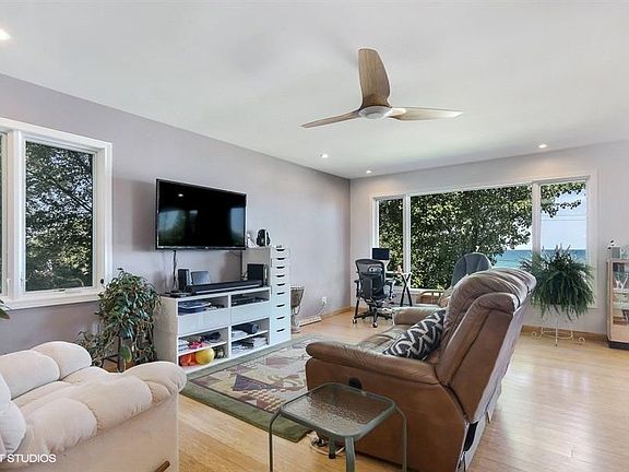 ENJOY THESE BEAUTIFUL LAKE VIEWS EVERY SEASON! Steps away from stop 22 beach access. 4 bedroom 3 bath home updated from roof to mechanicals with a 2 car garage, and ample front and back parking. The gorgeous kitchen includes stainless steel appliances,beautiful countertops, and a lovely backsplash. Bamboo flooring and lots of glass to look out from both kitchen and living room on to that breathtaking view. Master suite offers whirlpool tub and separate shower. Guest bath is ample size with huge rain shower, updated vanity, lighting and flooring. Mudroom/utility room comes off the two car garage so you can lose beach towels and flip flops before you enter. The lower level is a walk out to a front yard relaxation area so you can take in wonderful fall season on the lake. Two more bedrooms,bath,rec room and storage room completes this stunning property. Wake up with your coffee or wind down with your favorite beverage EVERYDAY enjoying the beauty of the lakefront