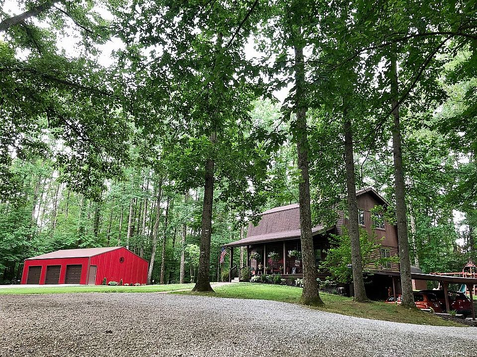 Buyers agents welcome! Beautiful, updated log cabin located on 12.47 acres in Monroe County. Great location for Bloomington, Bedford or Crane commuters. 4 Bedroom, 3 bath home. Recent addition with master suite on main level. The majority of acreage is wooded. There is a 40x30 pole barn, a small lean-to, a shed, and a playground. Home sits off private drive a mile from Harrodsburg. A/C replaced in 2020, new water heater 2021. *Buyer to verify square footage. Owners measurements differ from accessor card due to recent addition and partially finished basement. Addition exterior to be finished within next two weeks(delayed due to weather).