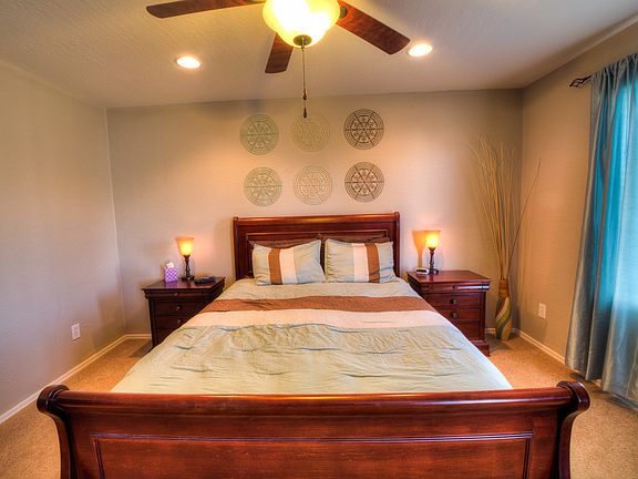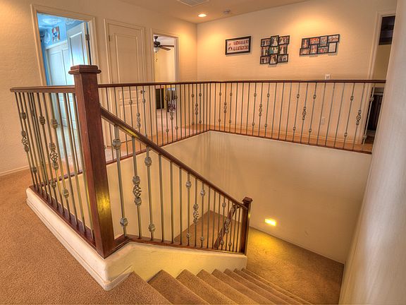 BANK APPROVED AT $180,000. APPRAISED AT $188,000 ON 6/14/14. Cherry cabinets, Corian countertops w/ island to living room make this ideal for socializing while preparing food. Walk-in pantry. French doors to backyard. Amazing Master Bedroom is twice the normal size. His/Hers walk in closets, 2 sinks and separate master tub and shower. Versatile formal living/dining area has large cathedral ceilings and would work as game room/entertainment room. Wrought-iron staircase w/ lighting make this home shine. Recessed lighting, 9'' ceilings, 20'''' tile, quality blinds and fans in every room. 3 car tandem garage w/ epoxy floor for your outdoor toys, extra car or a shop space w/ door to backyard too. Irrigation is in place. Young citrus tree. Tons of storage. Quiet area with parks nearby.