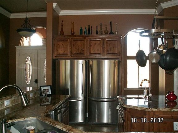 Abundance of concrete , huge 4 car garage with full bathroom stone shower walls stone floor to clean up in, Home is wired for a centralized entertainment hook ups. including shower. Gourmet kitchen with commercial appliances (2) dishwashers (2) ovens (2) refrigerators, huge center island with built in microwave, (6) burner stove, which is perfect for entertaining. The master suite is amazing huge shower for two, Jacuzzi Jetted tub and his and her closets. This home is exquisite. This is a completely custom home. The owner spared no expense at making sure this home was built to perfection for his Bride . All the drywall is mildew proof and upgraded lumber was used. Granite, tile and just amazing color schemes throughout make this a must see home. Seasonal creek sits below the home.