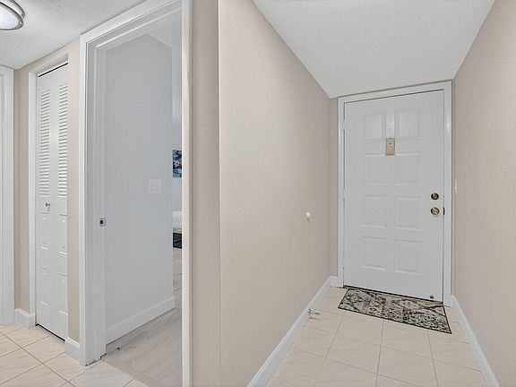 Rarely available, oversized 1st-floor corner unit in Boca Palms, ideally located in the heart of Boca Del Mar! This 2-bed, 2-bath condo is freshly painted and features new vinyl flooring, modern baseboards, and an indoor laundry room. Enjoy a spacious layout with two generously sized bedrooms, including a primary suite with updated ensuite and both baths offering walk-in showers. Relax on the screened patio with extra storage. Assigned parking, community pool and spa. Prime location near shopping, dining, highways, places of worship, and less than 5 miles to the beach. A-rated schools. Low quarterly fees includes roof maintenance, water, cable & exterior building insurance.