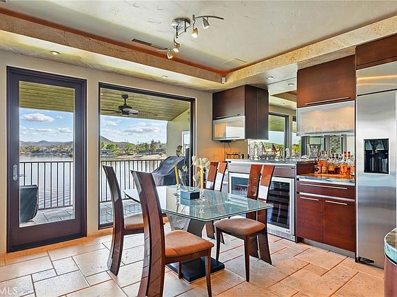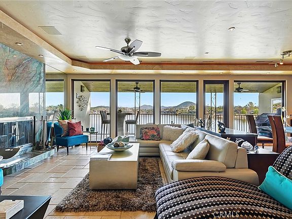Incredible Views await from this Upper-End Unit on the sought after Treasure Island. Imagine waking up to Lake and Mountain views. Not just one mountain range but all three! San Bernardino, San Gorgonio and San Jacinto. This Lakefront dream home was built to provide views from almost every space with truly no expense spared. Gourmet kitchen with Ge Monogram SS appliances, including built in Refrigerator and 42"Wine Fridge. One of a kind granite counters and large kitchen island with floating glass! Living Room has floating fireplace, hidden TV, surround sound and beautiful glass door leading to the balcony. Master Suite offers pop-up TV, sliding glass door and a spa-inspired master bath with under-lit onyx and marble vessel sinks with blown glass pendants. Walls are highlighted with real Seashells and programmable heated floors. Flooring is sound-proofed with cork underlayment and finished with tumbled Versailles pattern travertine and solid stone baseboards. One of the few units with direct garage access, over head storage with pulldown ladder access and the garage is also climate controlled. Treasure Island is its own gated community within the Gates of Canyon Lake. Treasure Island's amenities include: pool/spa, clubhouse, BBQ and Picnic area PLUS your own boat slip AND water/trash/landscaping paid for by HOA. Canyon Lake amenities include a 383 acre private lake, waterskiing, fishing, 20 beaches and parks, swimming pool, tennis/pickleball courts, 18 hole Golf Course, Restaurants, Equestrian Center and Campground.