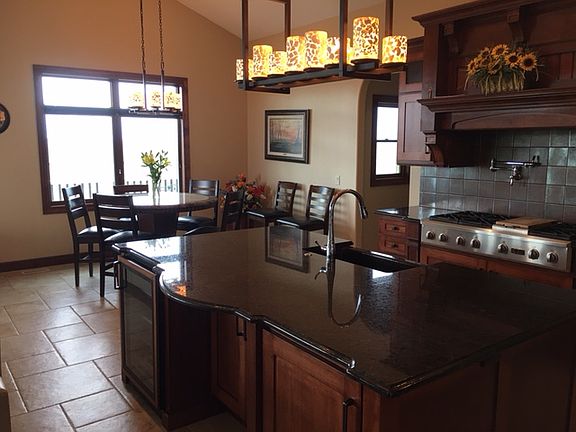 Beautiful custom built ranch home on 5 acre corner lot on hardtop road. Geothermal heating, heated floors, high end finish work with many built-ins. Large composite covered deck. Over-sized three car garage with additional single car garage in basement. Gourmet kitchen with large walk in pantry and solid core doors throughout. Courtyard, hot tub, wet bar and wine room in basement.