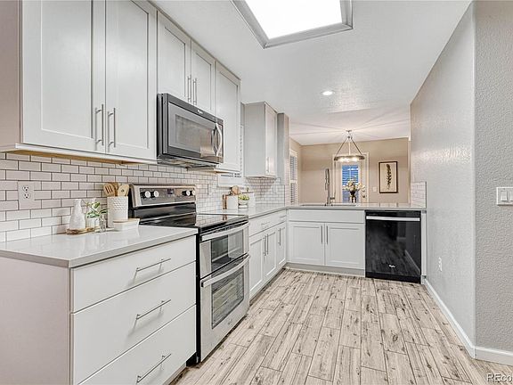 Welcome to this stunning 4-bedroom, 4-bathroom home in the southeastern part of the metro area. This beautifully updated residence boasts an open floorplan that seamlessly connects each living space. You'll love the stone wall in the great room as well as nice stone columns in the basement! The main floor features a versatile bedroom that can easily double as a spacious office. Enjoy cooking in the large, updated kitchen equipped with newer stainless steel appliances. Retreat to the expansive primary bedroom, complete with an ensuite bathroom and a walk-in closet. A second generously sized bedroom upstairs also offers a full ensuite bathroom. The full walkout basement includes a vast recreation room, space for a study or gym, an additional bedroom, and the fourth bathroom, adding to the home's versatility. There is a wet bar with sink and wine refrigerator. Relax on the covered patio beneath the upper deck, perfect for entertaining. As an end unit, this home offers added privacy and is ideally situated off E-470 for super convenient access to shopping, dining, and more. This home combines modern updates with comfortable living in a prime location.