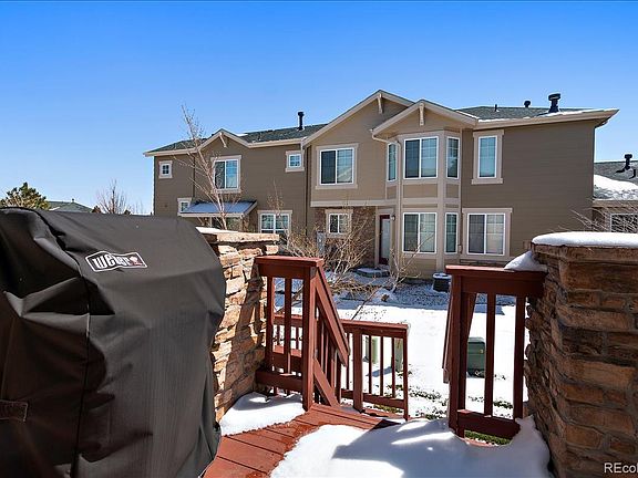 Welcome home to this absolutely gorgeous townhome in the prestigious Ridgeview Eagle Bend community of Aurora, Colorado. This spectacular home has beautiful style, custom finishes and has the best outdoor living area and over-sized deck in the community. Enjoy sunrises from almost every room of the house from the large picture windows that perfectly frame the park-like setting. The open, inviting entry is sure to please and captures you with all that this home has to offer. The open-concept floor plan features a large kitchen with beautiful cabinets with a decorate glass panel insert, upgraded counters, all appliances, pantry and a large eating space. The spacious family room has a cozy tile faced gas fireplace, custom plantation shutters, built-in entertainment center, surround sound speakers and a dramatic second story overlook. The main floor is complete with a separate dining area with easy access to the outdoor living area, an in-home office or optional bedroom, full guest bathroom, and convenient laundry area / mud room. The upper level features a luxurious master suite with a private bathroom and walk-in closet....You will love the views from this amazing room. The upper level also features a second guest suite with a full guest bathroom. The full basement is partially finished with a fourth bedroom, bathroom and open space area that is perfect for storage or future finish. Other features include an attached 2 car garage, a large private deck, maintenance free living, and so much more. Ridgeview at Eagle Bend is a delicately planned community with only the highest standards in living. Just steps away to the community pool, and miles of biking and hiking trails. Perfectly located near the Southlands shopping district where you will find casual and fine dining, entertainment and more. Cherry Creek Schools, easy access to E-470, and more. Hurry to see it today!!!