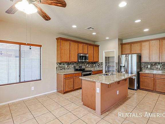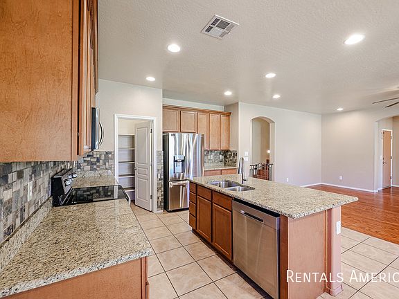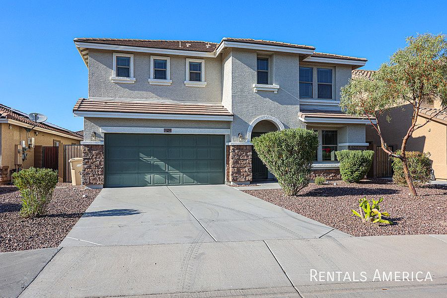 Move-In Special Start your lease in November 2024 & first full month is rent free with a 13-month lease Windmill Village welcomes you to a beautiful, 2-story, 5-bedroom, 3-bathroom home, with an extended tandem garage big enough for 3 vehicles! Over 3200 sq. ft. with hardwood flooring & carpet only in the 4 bedrooms. One full bath and one bedroom on the main floor. The upstairs primary room is spacious with its own den, separate wardrobe closets & luxurious en-suite bathroom. The kitchen boasts SS appliances, granite countertops, island and a breakfast bar opening up to the great room and expansive covered patio and grass-landscaped backyard. Installed solar panels will off set electricity costs. Don't miss out on this deal! Tour and apply today! One Time Admin Fee: $300, Pet Deposit: $300/pet (if applicable), Municipal Tax: 2%, Service Fee: 2%. $39/month Resident Benefits Package, Helping Heroes Discount Available! Carpet Cats Allowed Disposal Dogs Allowed Dryer Garage Hardwood Pets Allowed Vaulted Ceilings Washer