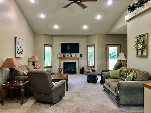 In quiet neighborhood North edge of town. Large backyard butts up to treeline. Large custom kitchen with bar. Stainless steel appliances. 9 foot ceilings on main level. Solid oak 6 panel doors throughout. Gas fireplace. Underground sprinklers on own well.