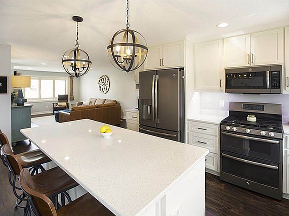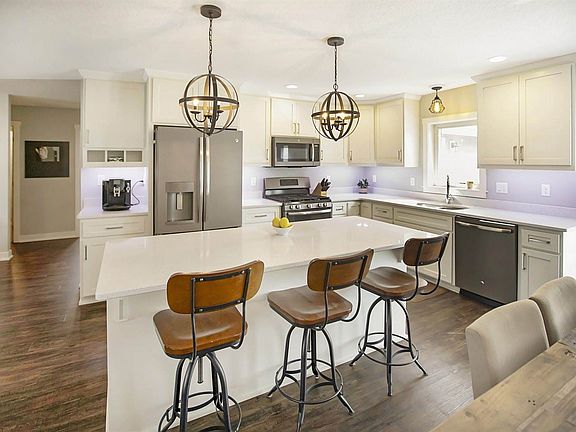 Completely remodeled in 2016 by Sutton Homes with a new master suite addition. Large island with bar seating, quartz countertops, and gas range in kitchen. Kitchen / dining is open to living room with gas FP. Master suite has exit to rear patio, double walk-in closets, soaker tub, walk-in tiled shower, double vanities, and toilet closet. Main floor laundry. Basement was recently finished. Large rear patio. Large shed. 6' vinyl fence. Sod / sprinklers.