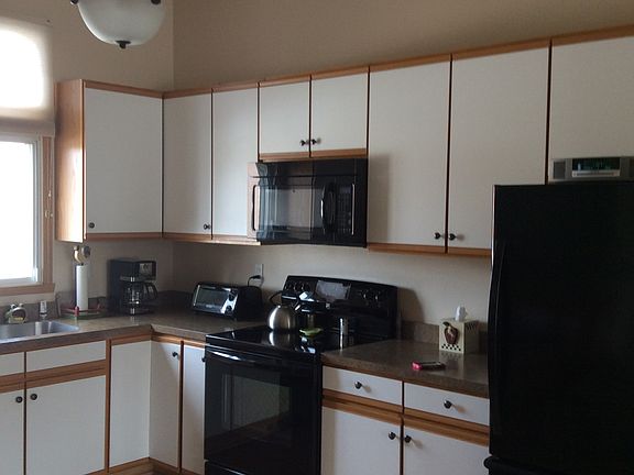 This home is bright and open with super high ceilings and lots of light. Excellent condition with new appliances, upgraded flooring and kitchen counter. Detached double garage, front enclosed patio. 2 cat are allowed, no dogs. Association fee is $100/month for lawn care, snow removal and building insurance.