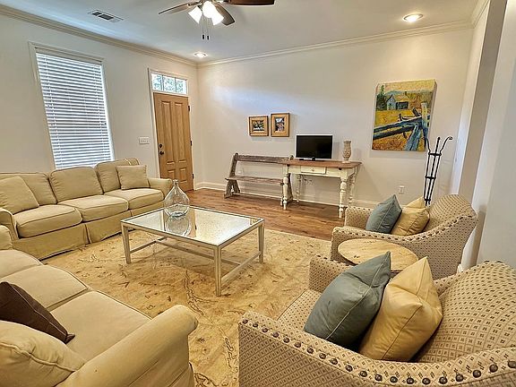 Fully Furnished 3br, 2.5 ba at charming & coveted Esplanade Ridge! Well maintained, single owner with new wood flooring downstairs and new paint. HOA fee is $275/month and includes water, internet, security, lawn & building upkeep and more. No short term rentals allowed under the HOA. Art downstairs excluded from sale. Buyers agent welcome.