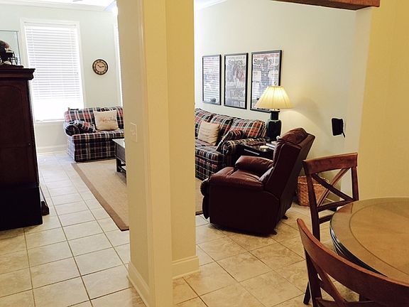 New paint, excellent condition. New Orleans style condo. Natural pond with fountain, 9 ft ceilings, vaulted bedroom ceilings. Stainless appliances. Granite tile in kitchen. Perfect for weekender or college student. Condo fee covers more than most: $205 for a 2 bedroom covers water, sewer, TV, internet, lawn, master insurance, weekend security, pest, and common area maintenance. Don't deal with the heavy traffic of other condo developments. Quiet condo development where rules are strictly enforced. Come see today!