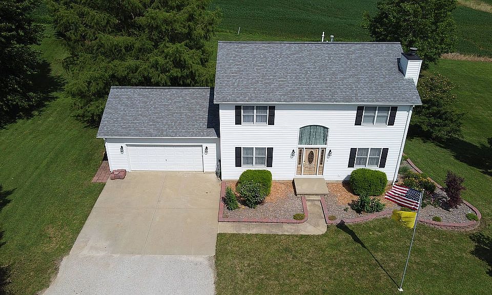 This beautiful and spacious family home has over 3000 sq ft of living space and is located on a cul-de-sac at the end of a great subdivision just outside of town. It sits on a large corner lot just shy of an acre. The foyer features chair rail and molding wainscoting and an open staircase. It has a formal dining room and living room with gas fireplace. The large eat in kitchen has a breakfast island and walks out onto a deck featuring a motorized sunsetter awning and unobstructed views of the neighboring field and pond. A rec/family room in the basement walks out onto a concrete patio under the main floor deck. Additional features include wet bar, six panel doors, water softener, reverse osmosis filter, walk in closet, laundry chute. Major updates: 2020 – motorized sunsetter awning 2019 – 2nd floor bath updated 2017 – new a/c & furnace, deck boards 2014 – new roof