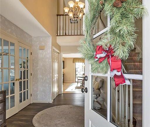 MULTIPLE OFFERS RECEIVED "HIGHEST AND BEST" DUE FEBRUARY 1st, 2024 by 5 p.m. Stunning two-story foyer welcomes you setting the tone for this unique home. The updated kitchen invites culinary enthusiasts with a double wall oven, custom island with glass cooktop, cherry cabinets, glass tiled backsplash, & walk-in pantry. The kitchen opens to the family room with a floor-to-ceiling stone hearth & fireplace adding warmth and character to the space. The living room, adorned with a 2nd fireplace, built-in bookshelves, & french doors is perfect for relaxing. Host holiday meals & dinner parties in the large adjacent dining room. The second floor unveils a master retreat, w/ a private balcony deck overlooking the countryside and amp; walk-in closet. Indulge in the luxurious master bath with a stand-alone tub, oversized tiled shower, & custom vanity. Four additional bedrooms offer both the room to grow & flexibility for a home office or two. The lower level is complete w/ a TV room, separate laundry, home gym, powder room & storage. The allure of this home extends outdoors, with a large covered patio & tiered decks—an ideal setting for entertaining year-round. A serene country setting overlooks acres of green space, enjoy sunsets from the outdoor living space. Swim year-round in the heated Endless pool/swim spa w/ spa seats & treadmill. Experience the perfect blend of function and comfort in this truly exceptional property.
