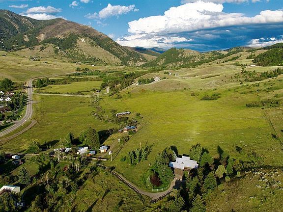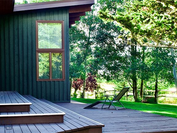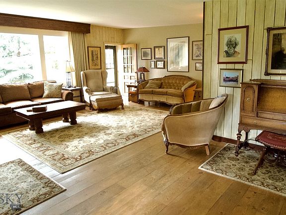 The lovingly maintained three-bedroom two-bath home was originally built as a shooting lodge and has been expanded over the years to its present state, including a large master suite with soaring ceilings and a wall of windows that open to the Bridger range. At the other end of the house are a dining room and newer kitchen with walls of windows that provide spectacular views of the Bridger, the iconic "M" and the story hills. The house is surrounded by mature landscaping which adds to the seclusion and invites an active residential wildlife population.
