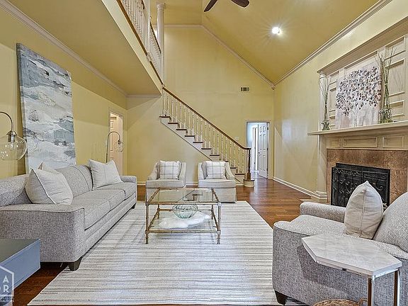 Located next to Tower Park Subdivision. This charming home featuring curb appeal from the moment you drive up! As you walk up the sidewalk you are welcomed by the large covered porch and beautiful landscaped lawn. As you step inside, you're greeted by a bright foyer with French doors that open into a living room with custom built-in shelves perfect for a game room, den, or library. This room connects to a formal dining room, ideal for special meals and gatherings. Moving further into the house, you'll find the main living room, with gas fireplace and two-story ceiling great for gatherings. The open kitchen, located just off the living room, features a large island, granite countertops, a built-in desk, and a cozy breakfast area with French doors that lead to the covered patio. Also on the main floor is the primary suite, a luxurious retreat it includes two walk-in closets, an updated bathroom, and a dressing room with a spacious makeup vanity that is a dream to get ready in. Heading upstairs the main staircase off the living room, you'll find a beautiful catwalk that overlooks both the living room and foyer. Upstairs, there are two guest bedrooms, a guest bathroom, and a large bonus room with custom built-ins, which could easily be used as a fourth bedroom. There is also a second staircase that leads from the bonus room down to the kitchen. Finally, step outside to the professionally landscaped backyard, which is fully fenced for privacy. It features a covered patio, a grilling patio, and plenty of space to relax or entertain. This home has had lots of love and offers both comfort and style, with thoughtful design touches throughout such as the hardwood floors, sprinkler system and custom plantation shutters. It is a must see to appreciate all the details. Call today for a tour.
