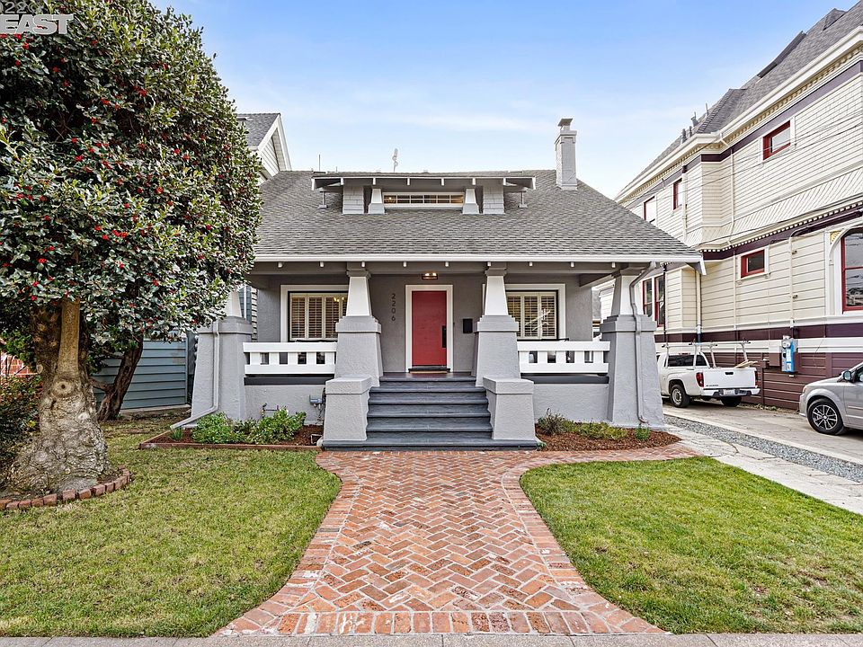 Built in 1912 just blocks from downtown Park St, the South Shore Center & Alameda beach/shoreline, this unusually spacious Craftsman offers the best of vintage design + modern conveniences! Situated on a generous lot with many amenities for outdoor entertaining, this 2-story home features 6BR, 2.5BA, a formal LR + DR, a spacious kitchen & a detached finished bonus space ideal for a home office or fitness room. Preserved vintage details include tray ceilings, gorgeous leaded glass windows, crown moulding & refinished oak floors. The stunning kitchen features a professional Viking range, abundant kitchen storage, stone counters & French doors to a large backyard deck w/a built-in gas fire pit. The main level primary bedroom has an en-suite BA+2 closets, while the well-sized upstairs BRs are freshly painted & have new carpeting. New stylish light fixtures throughout. Charming both inside & out, this picturesque vintage home offers gracious living in a sought-after Bronze Coast location.