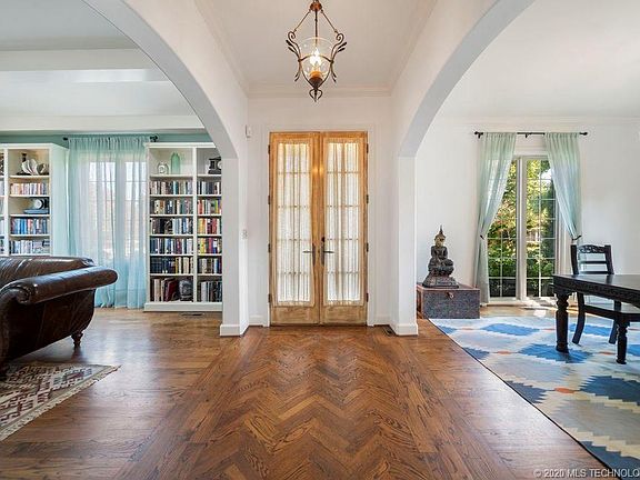 Designed by Jack Arnold. First floor master bedroom w/ vaulted ceiling & fireplace. Large den kitchen w/ fireplace. High ceilings. Corner lot. One block from Utica Square. Courtyard with covered patio, outdoor fireplace & small pool. Newly renovated by current owners.