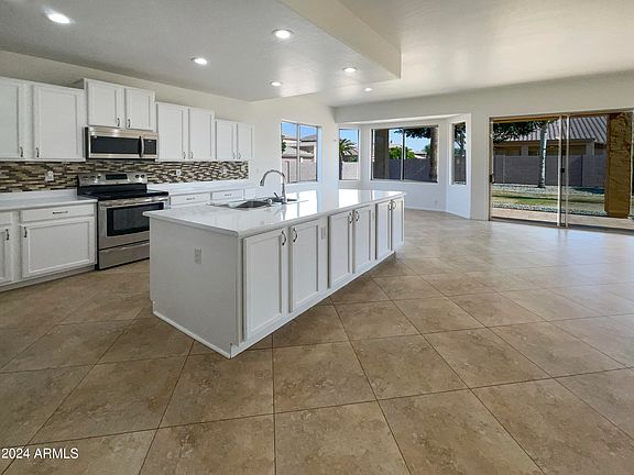 Seller may consider buyer concessions if made in an offer. Welcome to this beautifully designed home, offering a wealth of modern amenities. Downstairs is a large bedroom with a sitting room and bathroom, great if two primaries are desired. Inside, the neutral color palette enhances the natural light throughout. The kitchen is perfect for chefs, featuring a center island, accent backsplash, and stainless steel appliances. The primary bedroom includes a walk-in closet and an en-suite bathroom with double sinks, a separate tub, and a shower. Outside, relax or entertain on the covered patio overlooking the fenced-in backyard. This beautiful corner lot home is across from the park and walking distance from Chandler Traditional Academy-Liberty Elementary, stores, & restaurants.This property ef