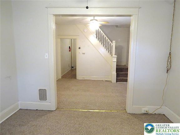 First time homebuyers, flippers and investors---great opportunity to own this For Sale twin in the Easton area's Wilson School District. With decent-sized Living Room, Dining Room and Kitchen, and with a first floor laundry/mudroom, this 3 bedroom, one bath home will serve a family well. Two bedrooms are located on the 2nd floor while the 3rd floor provides an expansive(primary?) bedroom with an extra area that can become a walk-in closet. Additional plusses are a fenced yard providing privacy and a backyard shed, providing storage. Under the carpet, you'll find hardwood flooring, waiting for the owners to bring them and the rest of the house, back to life!! Providing peace of mind and already in place are a brand new covered front porch, a newer roof, newer gas W/H, gas furnace and replacement windows. Located very close to schools and the 25th St corridor for food and shopping. Schedule your showing now!