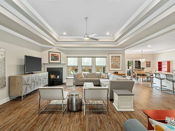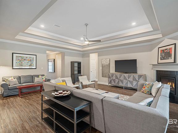 This is Island Living in the heart of Gulf Shores! What a wonderful opportunity to be a part of the "Pleasure Island" coastal community in the sought-after Wedgewood/Golf Club area. This gorgeous home has a fabulous, open floor plan with so much space, 4 bedrooms/2.5 baths, and a split floorplan that works and flows so beautifully. The outdoor amenities are truly amazing with an attached, majestic patio, and a beautifully designed outdoor pool, are a great extension of this gorgeous home and a wonderful transitional space. You'll spend hours upon hours outdoors swimming in the beautifully designed pool, sitting by the fire in the outdoor living area, and grilling out. It's the perfect place for entertaining. The bright, large kitchen features white designer cabinets, counter height island, granite countertops, and stainless appliances including a gas range. The double trey ceilings in the living room are just stunning and are complimented by a perfectly placed gas log fireplace. The primary suite also has a trey ceiling with crown molding, garden tub, separate tile shower with bench seat, double sink vanity, and a large walk in closet. Luxury vinyl plank flooring throughout the home is the perfect finishing touch. Gold FORTIFIED built and smart home technology are a must, and this gorgeous home has both. Home is set up with ADT security system, sky doorbell, and irrigation sprikler system.