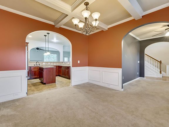 Opportunity knocks to acquire this large house and make it YOUR HOME. Beautiful foyer entry and separate dining room with bay window, wainscotting, coffered ceiling and crown. Relax at the raised bar island in the kitchen that's upgraded with backsplash, 3cm granite, a separate center island and a large walk-in pantry. Be sure to check out the dimensions of the bedroom sizes. Amazing primary suite on the main level with a sitting room and electric fireplace, octagon ceiling design, 2 walk-in closets, jacuzzi tub in the bath with separate shower. The upstairs has a second master suite with cathedral ceiling, a sitting area, two walk-in closets, jacuzzi tub and a tiled shower. Bedroom three has cathedral ceilings as well as its own private bath and walk in closet. Bedrooms 4 and 5 are spacious too and share a hall bath. Cozy up in the sunshine filled LOFT and read while waiting for your laundry to dry. If you prefer the outdoors, it's fully fenced for fur babies to enjoy. Sold as-is. Home warranty conveys. Contact your favorite local Realtor to tour.