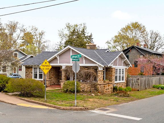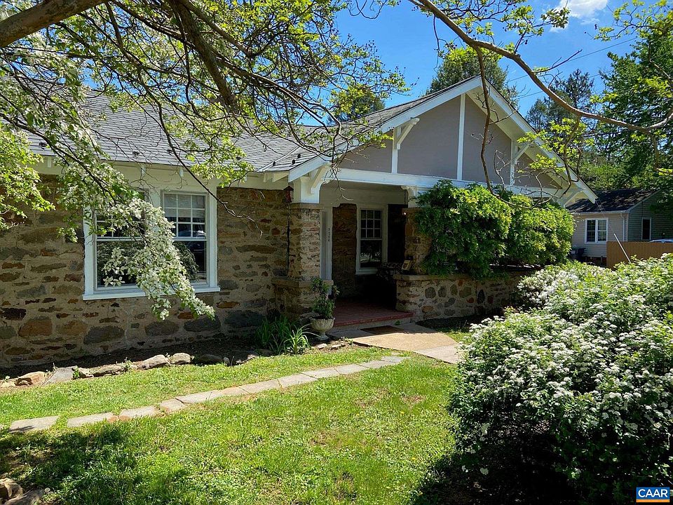 Rare opportunity to own a piece of Charlottesville history. 1st time on the market! Nestled in the heart of Fry Springs's neighborhood, this well cared for 100 yr old stone bungalow is a true gem. 2 Bedrooms/1 Bath offers a blend of vintage and modern comfort. Lg rooms, high ceilings, original woodwork, oak flooring and plaster walls throughout. The 21 windows placed throughout the home floods each room with natural light. Entering the home from the 243 sq ft covered front porch, you are welcomed with the original stone fireplace which is the focal point of the LR. Recent updates include - new HVAC system, new electric water heater and a new 50 yr faux slate roof, house rewired in '82, water/sewer lines in house replaced in early 2000's, spacious DR and spacious sunroom make for many enjoyable hours entertaining. The 1 car garage with a studio is grandfathered and could make for office space or artist studio. Off St. parking and partially fenced. Located in highly desirable neighborhood near the grounds of UVA, and steps to stadium and UVA hospital, Historic Downtown Ch'ville & Barracks Rd Shopping Center. Great potential for renovation awaits those looking for a truly unique and one of a kind property.