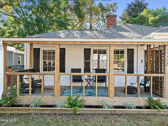 Stylish 1942 classic midtown cottage ideally located just minutes from the vibrant historic Wilmington Riverfront. Nestled in a well established neighborhood with tree lined sidewalks this home boasts timeless curb appeal. Inside you will find original craftsmanship highlighted by beautiful hardwood floors, crown molding and a cozy living room featuring a decorative capped fireplace. The adjoining study with pine board ceiling offers flexible space for work or relaxation. The updated kitchen features laminate wood floors, newer appliances and a sunny dining nook. Three generous sized bedrooms. Tile floor bath. Enjoy the tranquil outdoor setting from the recently added and expanded covered front porch. The grass lawn backyard has lots of use options and includes a useful utility storage building. Additional upgrades include vinyl windows and newer roof along with a brand new heat/cooling system connected to natural gas along with a tankless water heater. Off street parking option. Walk to community park. Don't miss this fantastic opportunity.