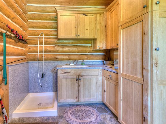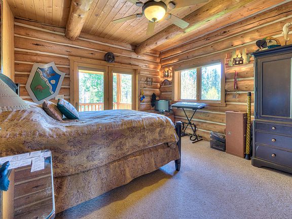 6,630 SF LOG HOME Custom log home on 39.87 acres with year-round creek. Level land with pines/aspens, very private location. Wood flooring, slate bathrooms, granite kitchen, guest quarters and more.