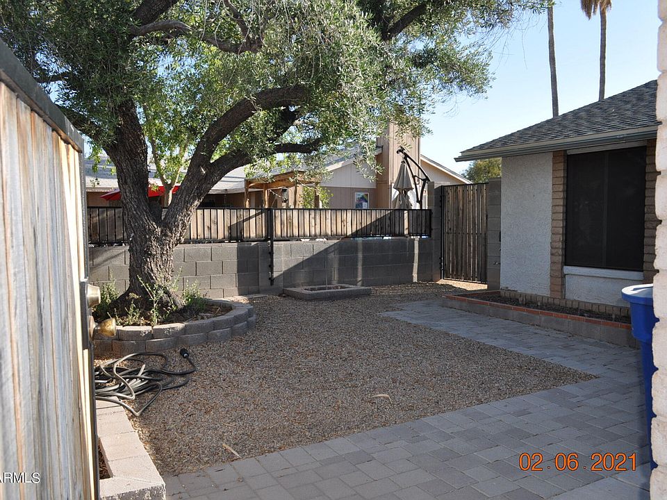 Don't miss out on this 3 bedroom home with 3 car garage and NO HOA. The home offers a private front courtyard with access to the backyard. There you'll find extended patio area and synthetic grass for low maintenance. Inside, the family room pops out with a wood burning fireplace. Dining area connected to the kitchen with French doors that lead to the backyard, RO system at the sink and a separate RO for the refrigerator. The rooms all have ceiling fans, the home has tile throughout with the exception of 2 bedrooms have carpet. The air duct have been cleaned and the AC unit was replaced in November 2021.