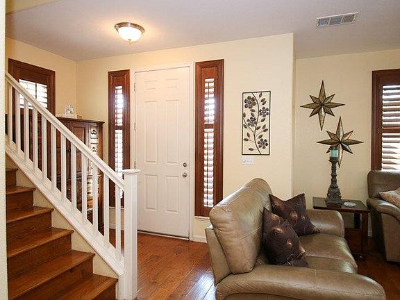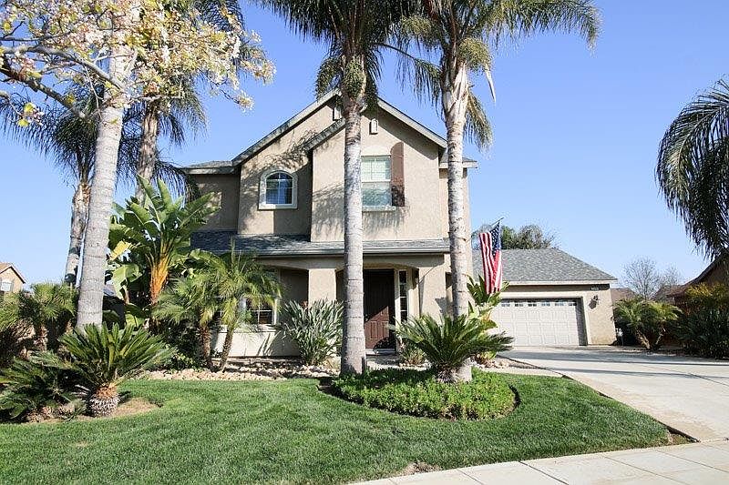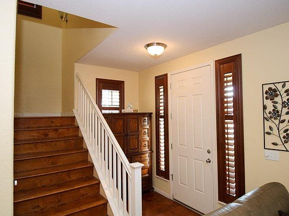 Extraordinarily beautiful. This 2 story home will not disappoint. Bottom floor has upgraded hardwood floors throughout giving this home a custom feel. Beautiful wood shutters to match wood floors plus custom paint. Both living areas can be used to accommodate your every need. Family Room currently used as formal dining room with fireplace to give ambience. Home has one downstairs bedroom with full bath for guests or mother in law. Upstairs provides 4 additional bedrooms plus large laundry room. Master bedroom is oversized plus master bath has dual vanities, jetted tub, separate shower and large walk in closet. Enjoy the charming backyard, especially for entertaining. Large wrap-around covered patio with ceiling fans. Easy maintenance backyard with stepping stones and pebble rock. Top this off with 4 car garage. Seriously! Room for your toys and cars both. Don't miss it!
