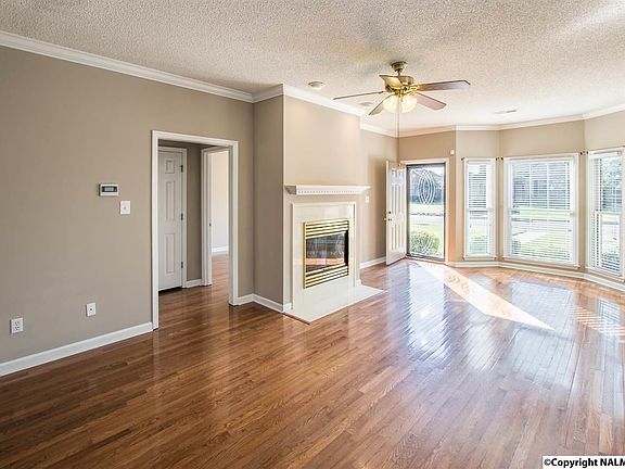 - LIVING ROOM DESC: Fireplace, Crown Mold, Wood Floor, Ceiling Fan, Bay WDW