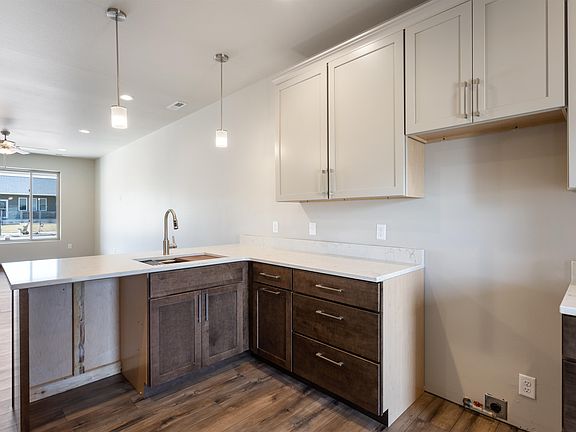 Experience refined living in this newly built townhome in the desirable Palisades Estates, Sturgis. Spanning 1,375 sq. ft., this home features 3 bedrooms, 2 bathrooms, and a 2-car garage, all designed for zero-entry, one-level convenience. The expansive open floor plan boasts soaring 9 ft ceilings, enhancing the sense of space and light. The master suite offers a beautifully tiled walk-in shower and a walk-in closet. Meticulously crafted by High Plains Construction, with over 20 years of expertise, this custom townhome exemplifies quality and style. Ideally situated near schools, shopping centers, parks, and hospitals, it provides unparalleled convenience without compromising on comfort. Contact us today to discover how this exceptional townhome can be your next retreat. Listed by Jeffery Christians, Real Broker LLC, 605-920-0425.