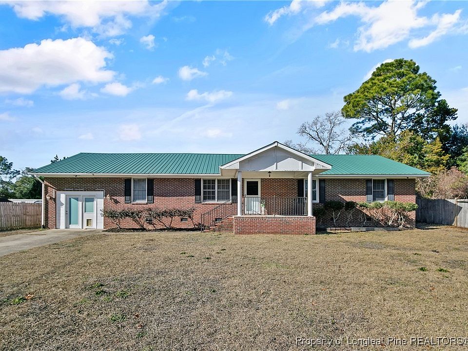 This charming brick ranch home has all the space you'll need to relax, entertain, and enjoy life! It's been well-maintained and features a durable metal roof and no carpet—only beautiful hardwood floors and tile throughout. The spacious living areas are perfect for both relaxing and entertaining. Outside, you'll enjoy a large front porch, ideal for unwinding, and a fenced yard offering privacy and plenty of room for pets or play. Garage can be used for kids play area. Additional storage is available with a detached shed, providing ample space for tools or outdoor equipment. This home is close to shopping, schools, and major roadways, making it both convenient and centrally located. Whether you're looking to relax indoors or enjoy the outdoors, this is the perfect place to call home. Schedule a tour today!