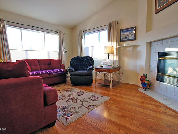 Vaulted ceilings/gas fireplace/two decks/fenced backyard/laminate flooring throughout except for carpeted stairs/almost new stainless steel appliances/corner unit with easy access/some mountain views from two decks/home owners dues paid for the rest of the year with a full price offer!