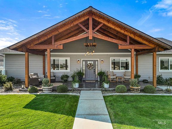 Discover luxury living w/ this single level home offering 2,378 sq ft of quality craftsmanship. A grand front porch w/ wood beams & a custom chandelier sets the tone before stepping into the open floor plan w/ a gas fireplace, picture window framing the backyard, & a striking kitchen w/ large island, leathered granite counters, & custom knotty alder cabinetry. 3 bdrms + a den/office provide flexibility for today’s lifestyle. The primary suite is a retreat w/ dual vanities, tiled walk in shower, & spacious walk in closet. Step outside to your private haven, from morning coffee on the covered patio to afternoons in the heated pool, this backyard is designed for everyday enjoyment. The .61-acre lot is fenced & fully landscaped, creating an inviting outdoor escape. A 2 car garage complements the remarkable 40'x48' shop featuring heated floors, loft, two 14’ doors, workbench, & covered RV bay. Built w/ ICF construction for superior efficiency. Crafted for a lifestyle of comfort, convenience, & timeless quality.