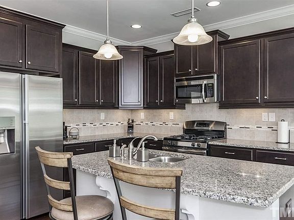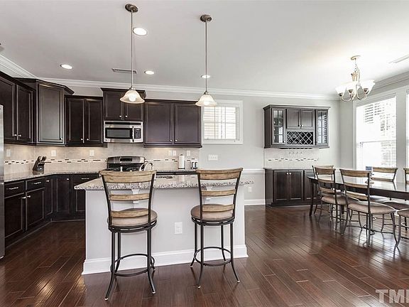 GORGEOUS 4 BEDRM HOME IN WEST CARY FILLED W/CUSTOM FEATURES & UPGRADES! Wide plank, hand-scraped Hardwd flrs on entire 1st level & both staircases & hallway upstairs! Gourmet kit w/large island, granite, SS appls & breakfast rm w/built in china hutch opens to HUGE great rm w/gas FP & screened in porch! 1st flr office! Master BR with WIC w/custom shelves & spa bath! Huge Bonus rm & full bath on 3rd flr! Crown molding! Mudrm & large pantry! Lots of storage. Private yard w/maintenance included!