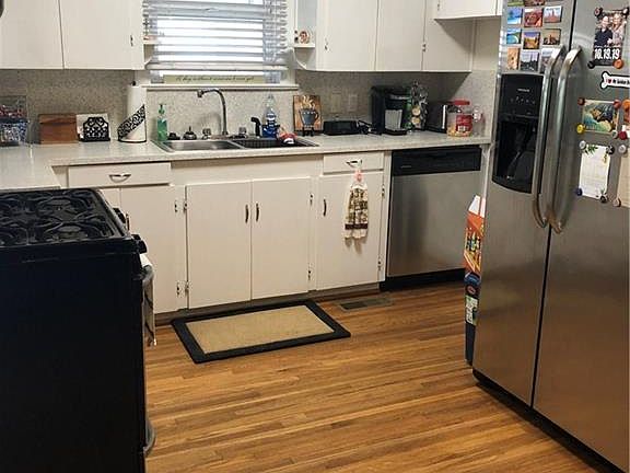 Newer windows, all original hardwood floors except room on back. All newer appliances SS, all new blinds, could be a 2 car garage with new door added - now a one car w/workshop.