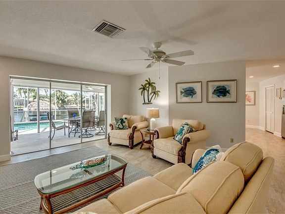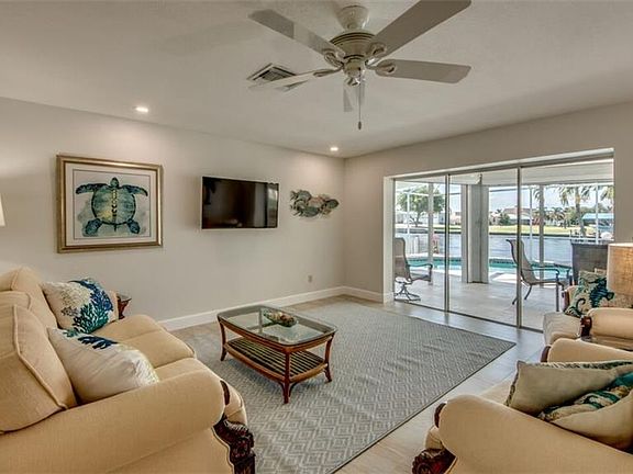 Come see this beautiful Vacation Rental Home in the wonderful Sunny Cape Coral Florida! Own a piece of paradise sitting right on the Palaco Grande Canal! This home has some of the most beautiful views sitting right outside on the dock. Look to your left and you can see the Caloosahatchee River. Fantastic views from this boat dock! As soon as you pull up you notice that the landscaping has been very well maintained. Enter into this very open and bright home with tile throughout. Water views from the entire back of the house. Check out this kitchen, large enough for a chefs dream. Sit in the back living room and relax as you watch the water and wildlife. You can take a dip in this fabulous pool with recent upgraded tumbled marble Lanai surface or sit out and read a good book under the lanai. Call to set up an appointment today. You will not be disappointed.