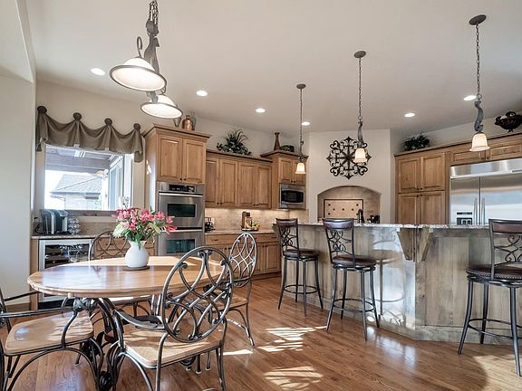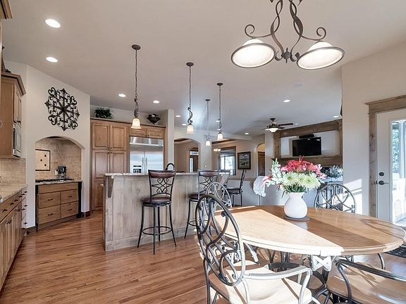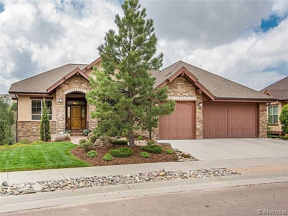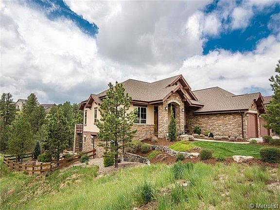 Welcome to beautiful Escavera and true Colorado living. This walkout ranch is the essence of "mountain rustic" with stucco, stone and cedar trim exterior details. Situated on a private .26 acre lot, it backs and sides to open space and offers treed views. The main floor consists of an open great room with expansive windows and fireplace, study, dining room, a master suite with fireplace and five piece bath, powder room, and second guest bedroom with en-suite bath, a large expanded deck that can be accessed from the guest, master and great room. The lower walkout offers a rec room with three additional bedrooms and two baths. The covered patio provides an excellent entertaining area with a water feature and fire pit. The kitchen has knotty alder wood cabinetry, slab granite, large island with seating, has gas cook top, stainless steel appliances, a wine and coffee bar and casual eating area.