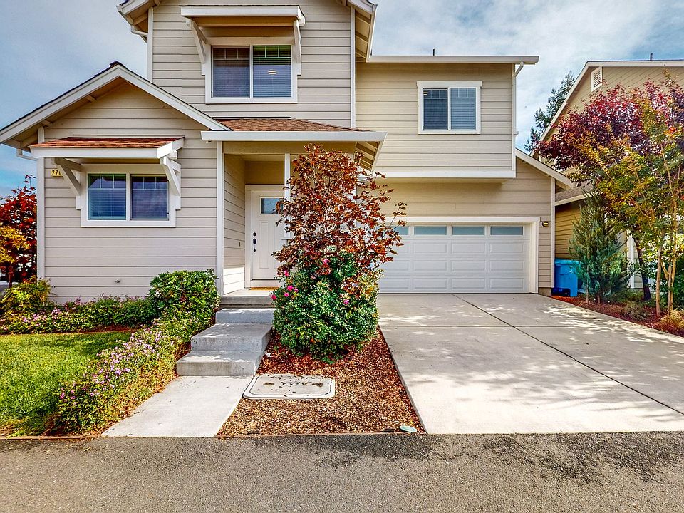 Please use the following link for a 3D tour! Beautiful 3 bedroom 2 bath two story corner lot home in Private cul-de-sac with 2 car garage! This cozy home welcomes you into an open floor concept living space, as you enter the home there is a half bath for guests, coat closet and access to and from the Garage. Beautiful kitchen with lots of cabinet space, the Kitchen faces the front of the home and it includes stainless steel appliances such as a gas Stove, Dishwasher, built in Microwave and Refrigerator. Luxury Vinyl flooring throughout the first floor and tile flooring in the half bath. There are 3 spacious bedrooms and 2 full bathrooms upstairs as well as a laundry closet with washer and dryer included as well as convenient built-ins in the laundry closet. Carpet flooring throughout the second floor and tile in the bathrooms. Full guest Bathroom has a shower tub combo and Primary Bathroom has a walk in shower, dual sinks and dual closets. Central Heating and A.C. Beautifully landscaped open front and side yard. Fenced in private back yard with raised deck, section turf area as well as sectioned stone area with a fire pit for entertainment. 2 car garage has some built ins as well for added convenience to store additional items and additional parking space in the private driveway. 1 Small dog ok. Emotional support and service animals welcome! 12 Month Lease. (EE) *Refrigerator, Washer and Dryer provided but not warranted.