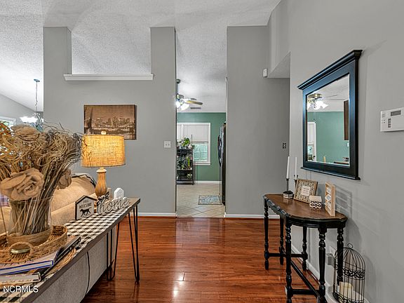 Welcome to this renovated 3 bedroom, 2 bath home that features MANY updates! When you pull into the driveway you are welcomed with a double bay, two car garage, mature landscaping and a garden bed. As you enter the front door, you will see the beautiful flooring which flows throughout the living room, hallway. The living room is open to the updated kitchen which comes with newer stainless steel appliances and flows smoothly into the combined dining room. Directly off the dinning room is a large screened in patio, leading directly to the fenced and spacious backyard! The bedrooms in this property are great size, and the owners suite includes a huge walk in closet. Your new home is in the perfect location, close to shopping, beaches, and just minutes away from Camp Lejeune. NO CITY TAX or HOA! Come see this home for yourself!
