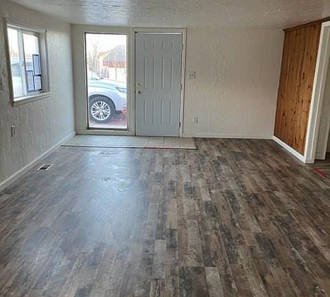 Spacious rancher with efficient floor plan and large lot. You will love the large front room, updated kitchen, new paint and all hard surface flooring throughout. The unique, private, setting only adds to this winner. Three bedrooms, one bath makes for a happy place for a growing family. Call today!