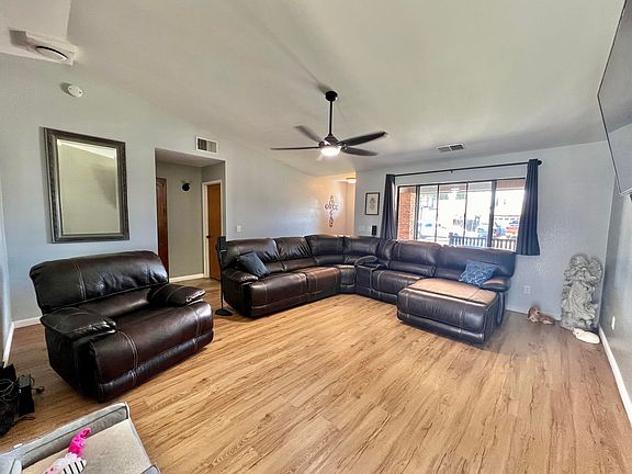 Come take a look at this Beautiful home on the NW side of town. This home features a split floor plan, Vaulted ceilings in the living room, RV parking and a private front patio. Upgrades include: Solar (2023), vinyl plank flooring, air conditioning and heating in 2016, tiled master shower, light fixtures, ceiling fans through out and a pool pump as of 2021. The open dining and kitchen leads you to the huge back yard where you will find covered Trellis patio, bon fire area for the cold winter nights and a crystal clear pool to enjoy and entertain during the HOT summers. Call your local Real Estate expert for a showing today.
