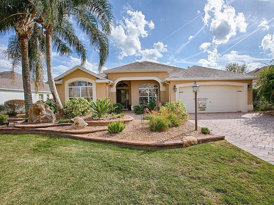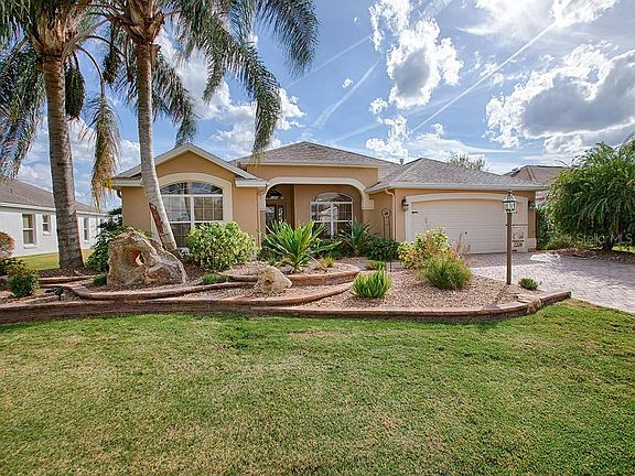 This is a golden opportunity for those who are looking for that perfect water view home. Don't sit too long on that fence thinking about viewing this home! It won't last! Not only is the water view the main attraction, this being a Gardenia is another added bonus! Add to that, the location-the Village of Tall Trees which is so close to shopping, banking, dining and free nightly entertainment at the squares. Not sure what gets better than this! For all those bird watchers, this is paradise! You have nature at its best! The enjoyment you will find relaxing in your lanai, viewing water and wildlife, and using your summer kitchen will be most satisfying! And there is more....A NEW ROOF is on its way! Seriously, you might want to cancel those plans today to visit this home! You will be glad you did! You'll love the beautiful flooring in the main area of the home, not to mention the updated fixtures! Plus, the absolutely beautiful kitchen has updated countertops and appliances. There's plenty of natural light and open space for the chef in you. The Gardenia Designer model is one of the most sought after floor plans in The Villages. This home offers the ultimate living with such a private setting! Even when you arrive, the amazing enhanced landscaping will catch your attention, with stacked rock wall landscaping and oversized rocks that add ultimate beauty to this home. The paver driveway and walkway enhance the curb appeal. Call today for your private showing.