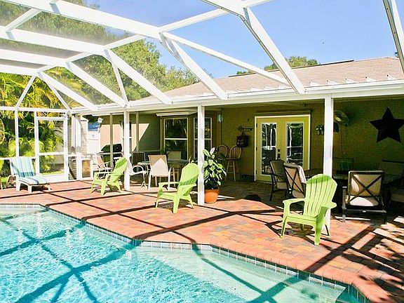 Gorgeous home located on a quiet street near shopping, beaches, highways and downtown Venice. As you drive down the long driveway you will find that this oversized lot has plenty of privacy and two parking pads for an RV, Boat and all of the toys. As you walk through the screened breezeway, you will find that the home has a very open feel. The kitchen is equipped with all stainless steel appliances and all of the floors have been tiled. Two French doors will lead you to an incredibly private lanai with brick pavers overlooking the sparkling waters of your pool and Jacuzzi. The yard is so private and lushly landscaped that you it could feel like you are in the country. Two sheds are located on the property one which is roughly 12''X24'' and the other is 10''X10''. The larger shed has water and electric. Two parking pads on both sides of the home are equipped with 30 amp.electric. The yard is fully fenced in and can easily keep pets inside. The home has hurricane shutters on all of the windows.